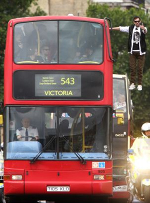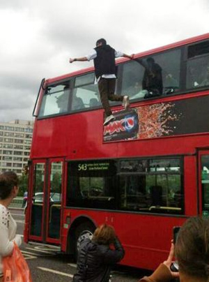 Έκανε μια διαδρομή κατά μήκος της γέφυρας του Westminster στο πλάι ενός λεωφορείου, αφήνοντας άναυδους τόσο τους τουρίστες, όσο και τους ίδιους τους επιβάτες.