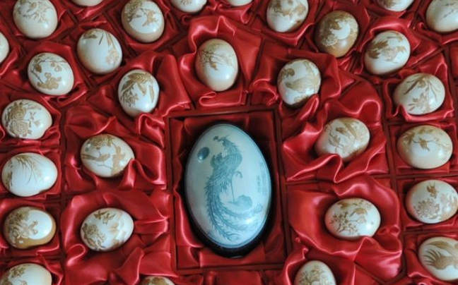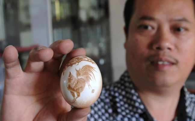 Εντυπωσιακά χαρακτικά είναι τα έργα του Κινέζου καλλιτέχνη Pu Derong. Ακόμα πιο εντυπωσιακή είναι η επιφάνεια πάνω στην οποία εργάζεται: το κέλυφος του αυγού.