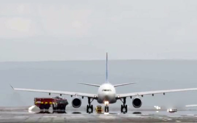 Την ώρα που το αεροσκάφος τροχοδρομούσε για να μπει στο διάδρομο απογείωσης ο δεξιός κινητήρας ανεφλέγη και εξερράγη. Το Airbus φαίνεται να γλιστρά ελαφρώς δεξιά-αριστερά αλλά ο πιλότος ανακτά άμεσα τον έλεγχο.