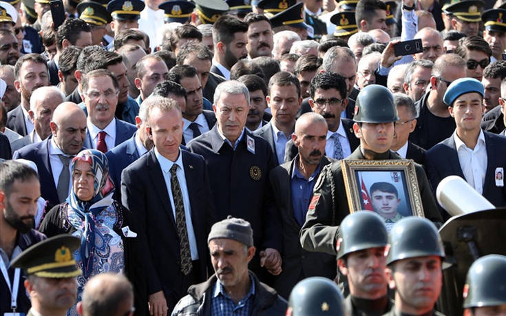 Αξίζει να αναφερθεί πως το τουρκικό υπουργείο Άμυνας προκειμένου να «ηρωοποιήσει» την ηγεσία του, τονίζει στην σχετική ανακοίνωση πως ο Ακάρ και οι στρατηγοί του, πήγαν στην κηδεία έχοντας ακόμα στα παπούτσια τους την σκόνη από το μέτωπο όπου είχαν μεταβεί για να συντονίσουν την επιχείρηση.