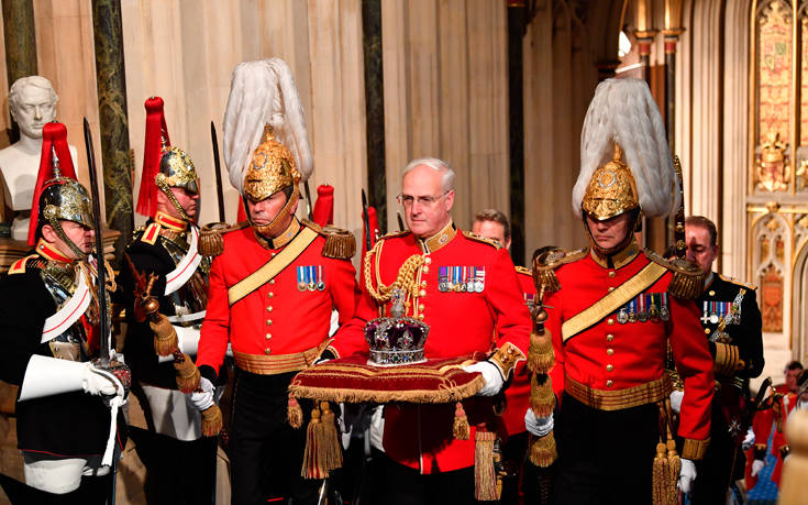 Όπως επισημαίνει η εφημερίδα Mirror, η βασίλισσα Ελισάβετ εκφώνησε την ομιλία της φορώντας τη μακριά βελούδινη κάπα, όπως προβλέπεται, αλλά όχι το προβλεπόμενο στέμμα με τα χιλιάδες διαμάντια, το οποίο ήταν τοποθετημένο σε ένα τραπεζάκι μπροστά της.