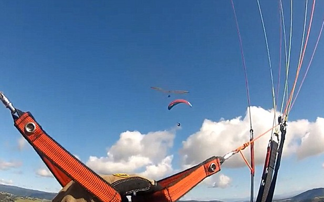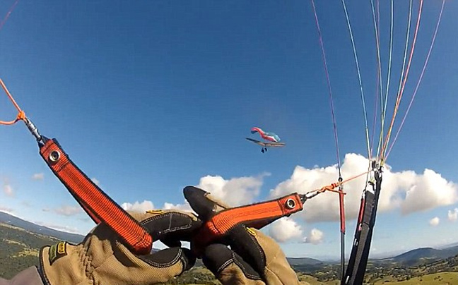 Τύχη βουνό είχαν ένας αιωροπτεριστής κι ένας αλεξιπτωτιστής πλαγιάς που συγκρούστηκαν στον αέρα ενώ πετούσαν στην Αυστραλία. Όπως φαίνεται στο βίντεο που τράβηξε ένας άλλος αλεξιπτωτιστής, οι στιγμές ήταν δραματικές.