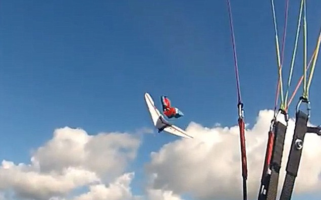 Οι δύο συγκρούστηκαν και άρχισαν να στροβιλίζονται προς το έδαφος με το αλεξίπτωτο τυλιγμένο γύρω από το αιωρόπτερο.