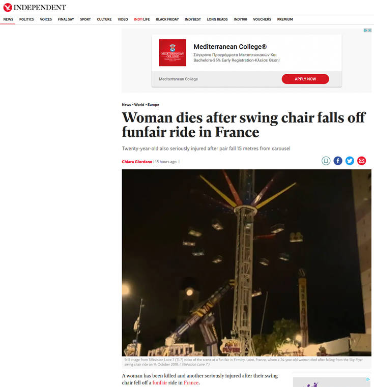 Ένα τραγικό συμβάν εκτυλίχθηκε σε λούνα παρκ στην πόλη Σεν Ετιέν της Γαλλίας.