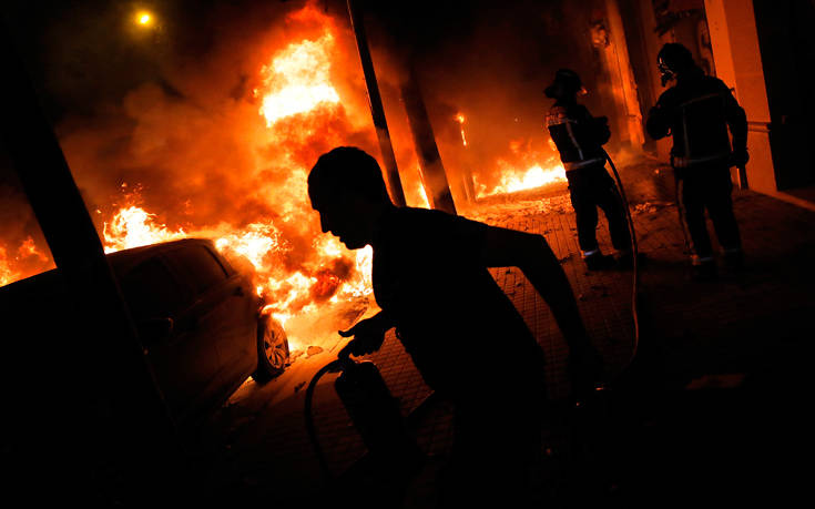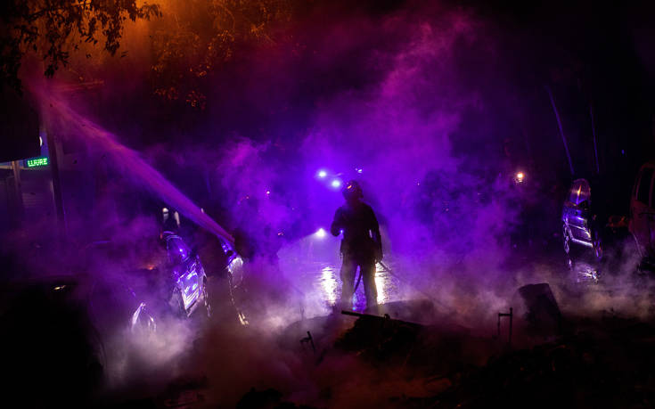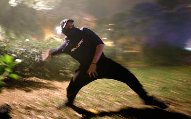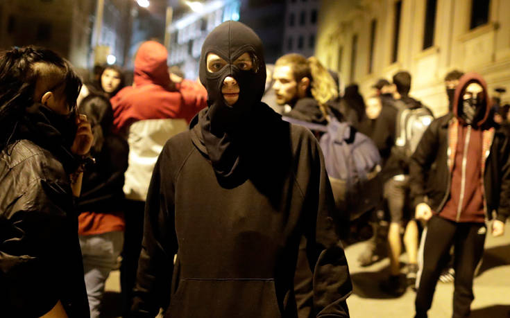Έπειτα από την ειρηνική πορεία, εκατοντάδες νέοι ακτιβιστές με σκούρα ρούχα, μάσκες και κράνη μηχανής, άναψαν φωτιές κι ύψωσαν οδοφράγματα, πυρπόλησαν αυτοκίνητα κι έριξαν πέτρες και βόμβες μολότοφ και «αντικείμενα με οξέα» στις ειδικές κατασταλτικές δυνάμεις της αστυνομίας. Σύμφωνα με αστυνομικές πηγές, οι ταραξίες προσπάθησαν επίσης να ρίξουν φωτοβολίδες εναντίον του ελικοπτέρου της αστυνομίας.