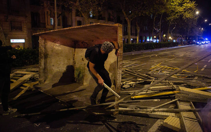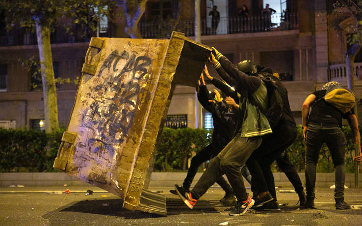 Διαδηλωτές πυρπόλησαν αυτοκίνητα και έριξαν βόμβες μολότοφ εναντίον αστυνομικών χθες, Τετάρτη, στη Βαρκελώνη, εντείνοντας την αναταραχή που πυροδοτήθηκε από την καταδίκη Καταλανών αυτονομιστών ηγετών οι οποίοι είχαν επιδιώξει να ανακηρύξουν ένα ανεξάρτητο κράτος.