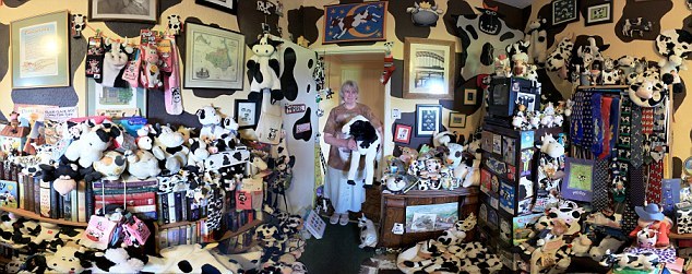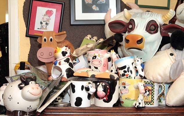 Η «εμμονή» της ξεκίνησε με ένα παράξενο ρολόι και ένα ζευγάρι παντόφλες. Πλέον η περίεργη συλλογή της αριθμεί πάνω από 2.000 κομμάτια με θέμα τις αγελάδες!