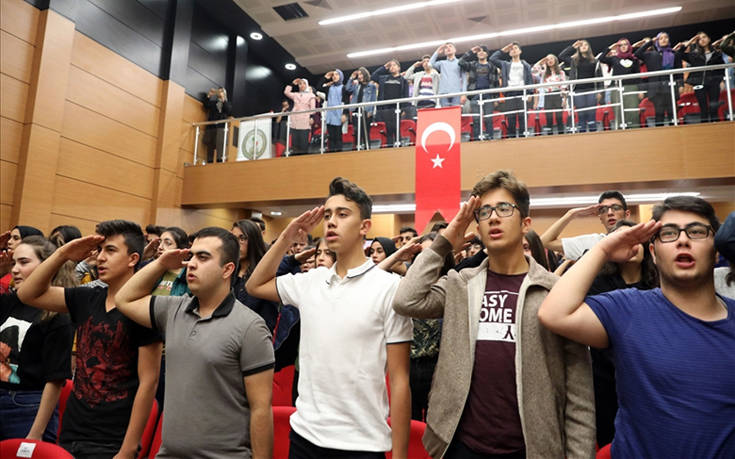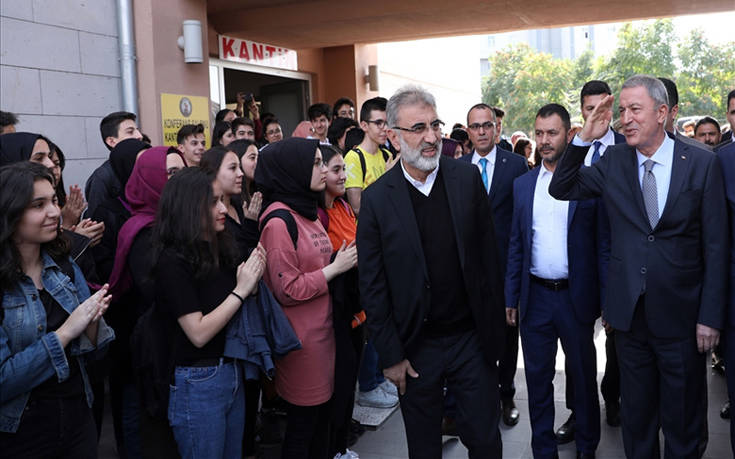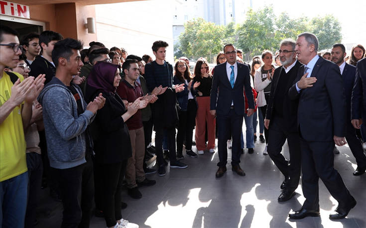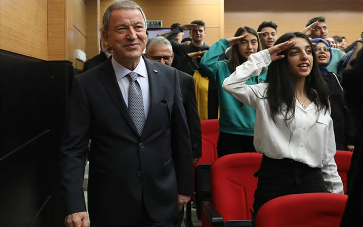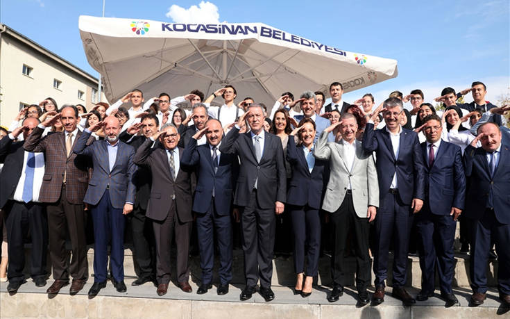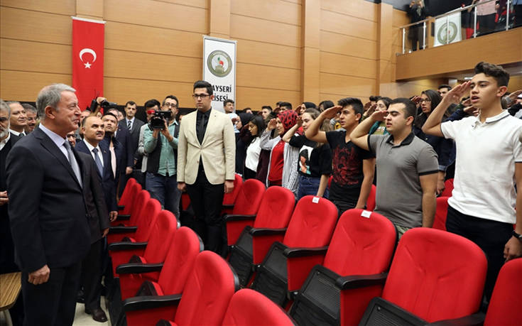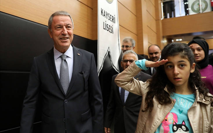 Τη «μόδα» των στρατιωτικών χαιρετισμών στην Τουρκία συνέχισε ο υπουργός Άμυνας της χώρας Χουλουσί Ακάρ, δίνοντας μάλιστα το παρών σε τελετή σχολείου.