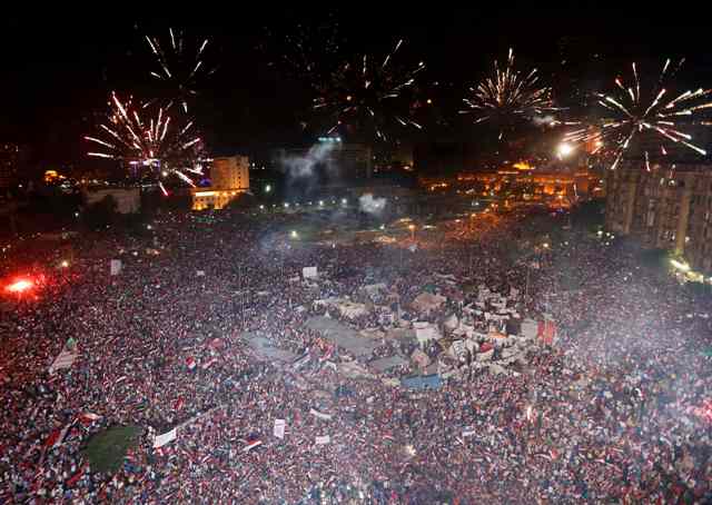 Η ομιλία του αλ Σίσι έγινε δεκτή με ζητωκραυγές και πυροτεχνήματα στην πλατεία Ταχρίρ, ιδίως η φράση του στρατηγού με την οποία ο επικεφαλής των ένοπλων δυνάμεων ανακοίνωσε πως ο Μόρσι δεν είναι πλέον ο πρόεδρος της Αιγύπτου. «Ο λαός και ο στρατός ενεργούν ενωμένοι», ήταν ένα από τα συνθήματα που ακούστηκαν.