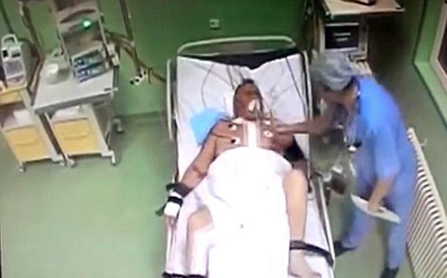 Έναν πεπειραμένο γιατρό, με πεντακάθαρο μέχρι σήμερα μητρώο, να χτυπά επανειλημμένα έναν ασθενή δεμένο στο κρεβάτι του κατέγραψε η κάμερα σε Μονάδα Εντατικής Θεραπείας σε ρωσικό νοσοκομείο.
