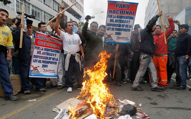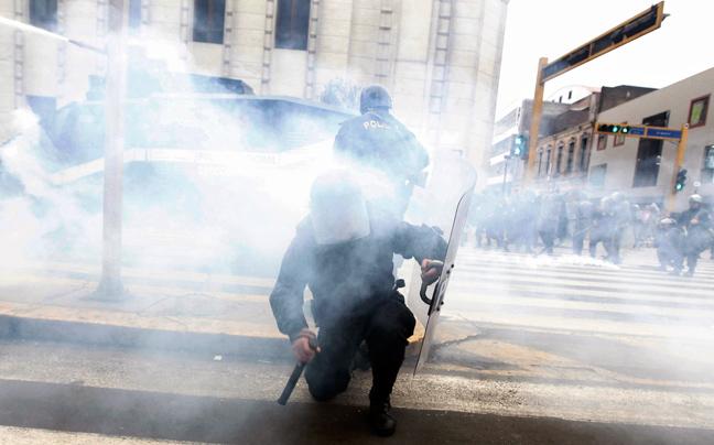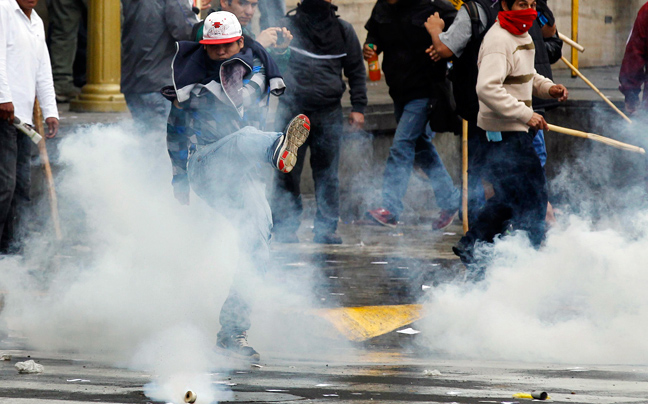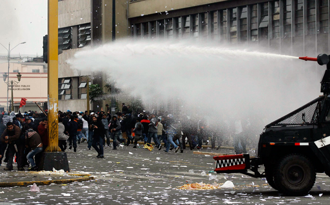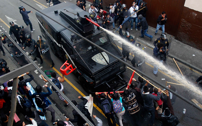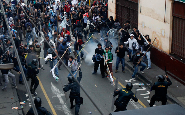 Έκρυθμη ήταν η κατάσταση στο Περού ανάμεσα σε φοιτητές, δημόσιους υπαλλήλους και την αστυνομία, που έκανε χρήση δακρυγόνων για να διαλύσει τις συγκεντρώσεις.