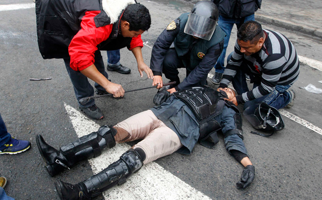 Τα τοπικά τηλεοπτικά μέσα μετέδωσαν εικόνες όπου φαίνονται αστυνομικοί να ρίχνουν δακρυγόνα και νερό κατά των διαδηλωτών, ορισμένοι από τους οποίους απάντησαν με τη ρίψη πετρών. Σύμφωνα με ιατρικές πηγές, αρκετοί άνθρωποι τραυματίστηκαν κατά τη διάρκεια των συγκρούσεων στη Λίμα και σε άλλες περιοχές της χώρας όπου πραγματοποιήθηκαν διαδηλώσεις.