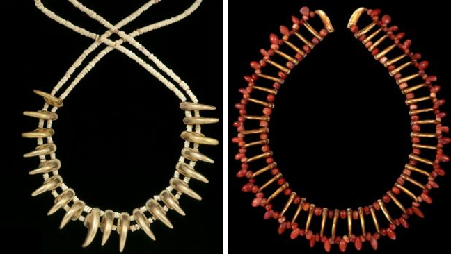 Μεταξύ των εκθεμάτων είναι επίσης κοσμήματα και χρυσές μάσκες τις οποίες φορούσαν στις τελετές ταφής.