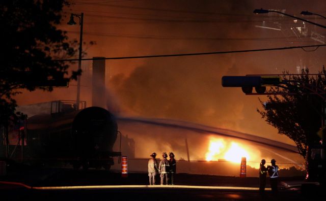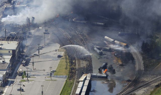 Τουλάχιστον τέσσερα βαγόνια που μετέφεραν αργό πετρέλαιο εξερράγησαν στη διάρκεια της νύχτας από την Παρασκευή προς το Σάββατο στην πόλη των 6.000 κατοίκων που βρίσκεται περίπου 250 χιλιόμετρα ανατολικά του Μόντρεαλ όταν η «ακυβέρνητη» εμπορευματική αμαξοστοιχία εκτροχιάστηκε στη μικρή πόλη Λακ-Μεγκαντίκ.