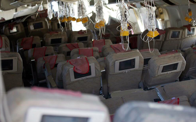 Οι φωτογραφίες δείχνουν καθίσματα που έχουν φύγει από τη θέση τους και μάσκες οξυγόνου που κρέμονται, και αποτελούν δείγμα του τρόμου που έζησαν οι 307 επιβάτες.