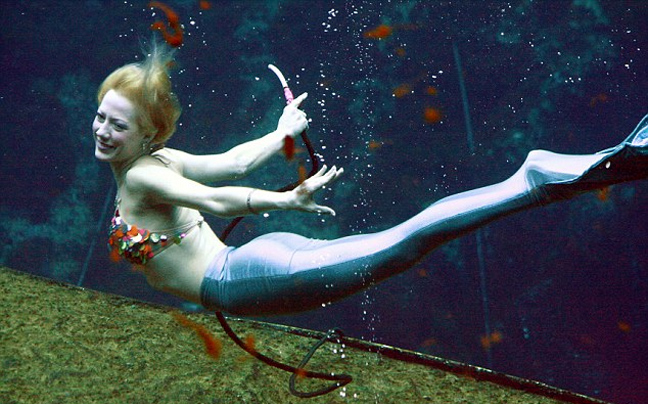 Φορούν χοντρά νάιλον καλσόν κάτω από τη στολή τους για να κρύψουν «παχάκια» που δεν ταιριάζουν σε γοργόνα- αλλά υπάρχουν στη γυναίκα- και μοιράζονται μυστικά για… υποβρύχιο μακιγιάζ που διαρκεί.