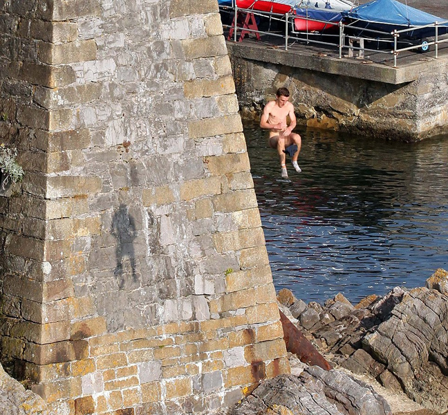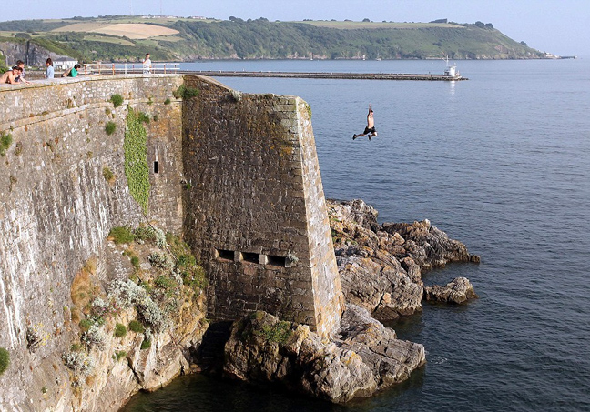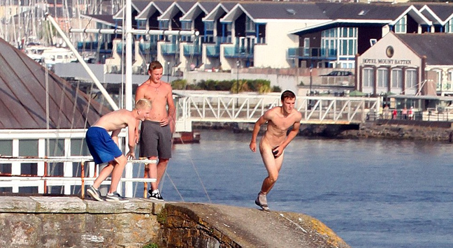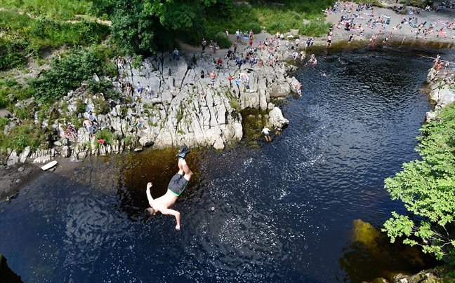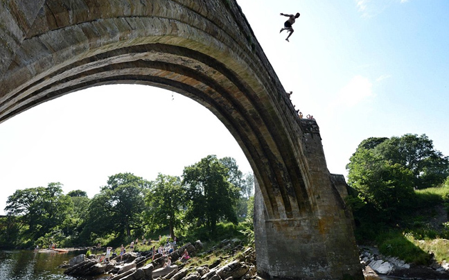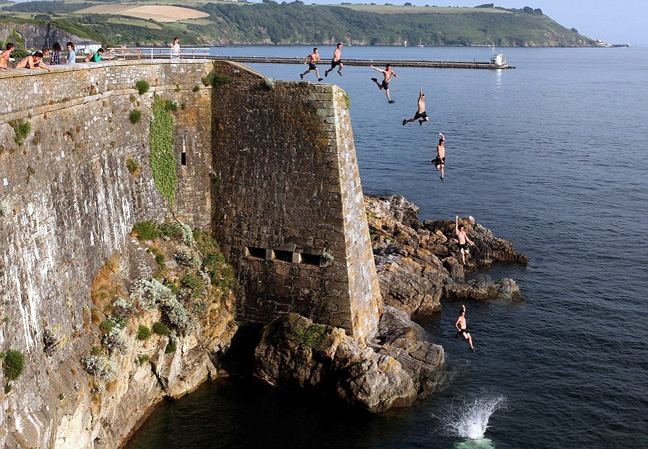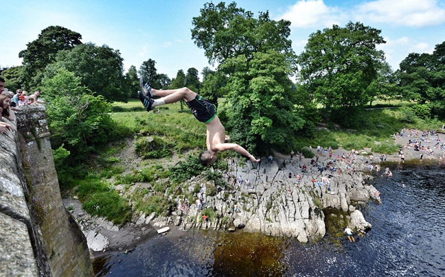 Όταν εμφανίζεται ο ήλιος στη Βρετανία, εμφανίζονται και οι παράτολμοι νεαροί που τα παίζουν όλα για όλα πηδώντας στο νερό από μεγάλα ύψη.