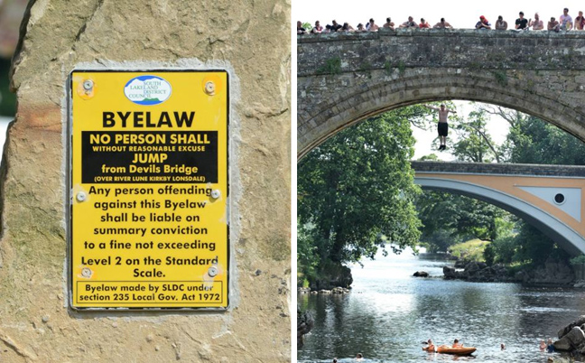 Ο θάνατος ενός 22χρονου πέρσι, από το ίδιο «χόμπι» δεν φαίνεται να τους πτοεί. Ο Darrell Teal έχασε τη ζωή του τον περασμένο Ιούλιο πηδώντας από τη «Γέφυρα του Διαβόλου», σε ύψος σχεδόν 9 μέτρων, στο Kirkby Lonsdale της Βρετανίας.
