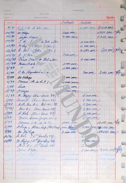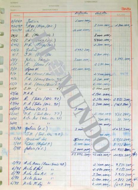 Η εφημερίδα El Mundo δημοσίευσε σήμερα –αφού παρέδωσε στο Ανώτατο Δικαστήριο– αυτές που ανέφερε ότι είναι χειρόγραφες, αυθεντικές λογιστικές εγγραφές του μυστικού παράνομου ταμείου του Λαϊκού Κόμματος.