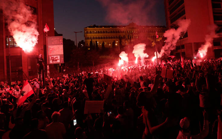 Άνευ προηγουμένου αντικυβερνητικές διαδηλώσεις πραγματοποιούνται σε όλον τον Λίβανο. Ο Χαρίρι απηύθυνε έκκληση σε όλους τους Λιβανέζους να προστατεύσουν τη δημόσια ειρήνη.