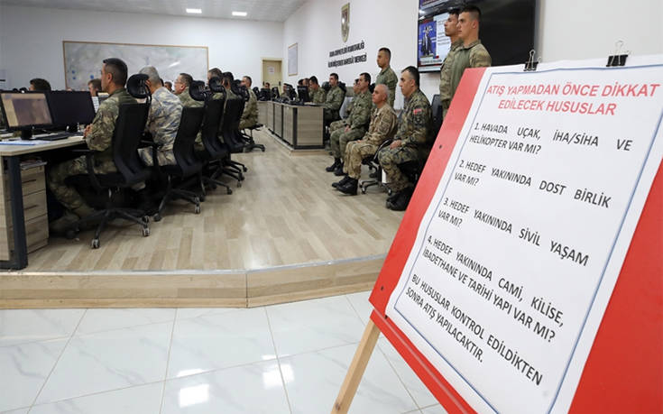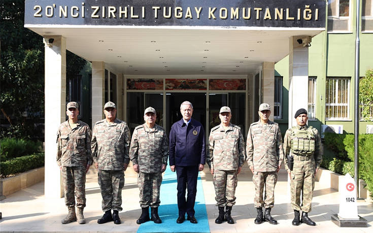 Στη συνέχεια, από το κέντρο επιχειρήσεων των Τουρκικών Ενόπλων Δυνάμεων, από όπου συντονίζεται η εισβολή στη Συρία και στο πλαίσιο αναφορών για τη διαπραγμάτευση που είναι σε εξέλιξη με τη Μόσχα για την παράδοση στους Ρώσους 18 αιχμαλώτων του καθεστώτος Άσαντ, ο Ακάρ μίλησε και για τα άλλα «μέτωπα» της χώρας του, αναφέροντας πως οι δραστηριότητες των Ενόπλων Δυνάμεων της Άγκυρας συνεχίζονται σε Αιγαίο, Ανατολική Μεσόγειο και Κύπρο.