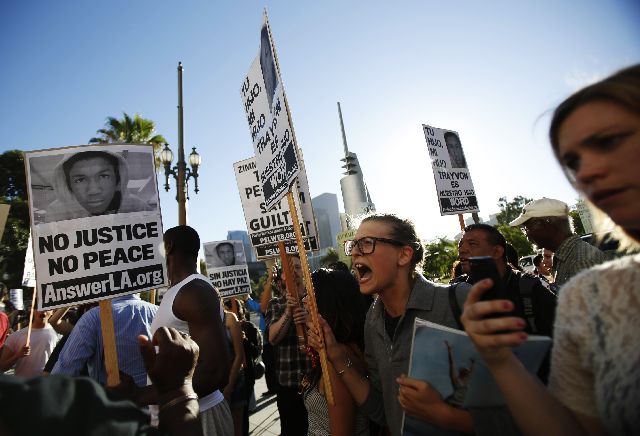 Στους δρόμους βγήκαν και πάλι οι πολίτες στο Λος Άντζελες εκφράζοντας την αντίδρασή τους μετά τη δικαστική απόφαση που αθώωνε τον Τζορτζ Ζίμερμαν για τον πυροβολισμό που κόστισε τη ζωή του 17χρονου Τρέιβον Μάρτιν.