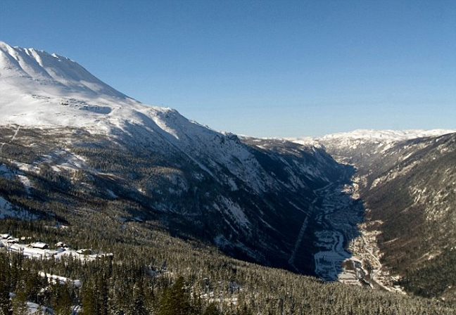 Η Rjukan βρίσκεται στο βάθος μιας κοιλάδας με αποτέλεσμα το χειμώνα κυριολεκτικά να μην τη βλέπει ο ήλιος. Οι ακτίνες του δεν αγγίζουν την πόλη από το Σεπτέμβριο έως το Μάρτιο.