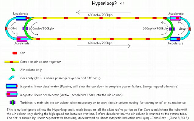 Ο μηχανικός John Gardi ανέβασε στο twitter τη δική του ιδέα για το τραίνο και ο Musk του απάντησε: «Η δική σου εικασία είναι η πιο κοντινή».