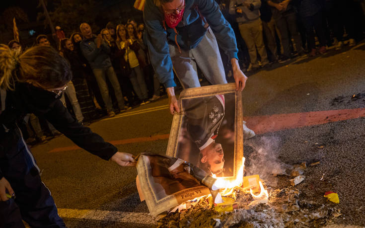 «Ο Ισπανός βασιλιάς δεν είναι ευπρόσδεκτος στην Καταλονία», έγραφε το πανό ενός διαδηλωτή, ενώ άλλοι ύψωναν σημαίες της Καταλονίας και ανάποδες φωτογραφίες του μονάρχη.