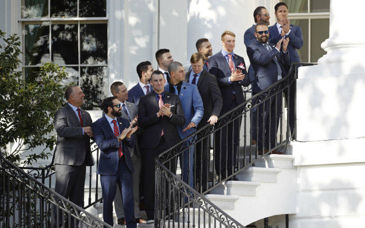 «Η Αμερική ερωτεύτηκε το μπέιζμπολ των Nationals. Δεν θέλουμε να μιλάνε για τίποτα άλλο παρά για αυτό και για την «παραπομπή». Εγώ προτιμάω μακράν το μπέιζμπολ» συμπλήρωσε ο Ντόναλντ Τραμπ σύμφωνα με το Αθηναϊκό Πρακτορείο Ειδήσεων.