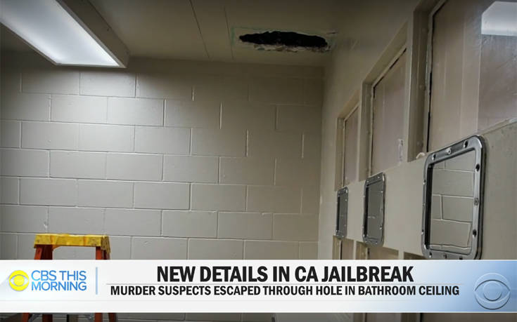 Ανθρωποκυνηγητό έχουν εξαπολύσει οι αρχές στην Καλιφόρνια για δύο δραπέτες φυλακών, οι οποίοι απέδρασαν ανοίγοντας μία τρύπα στο ταβάνι της τουαλέτας.