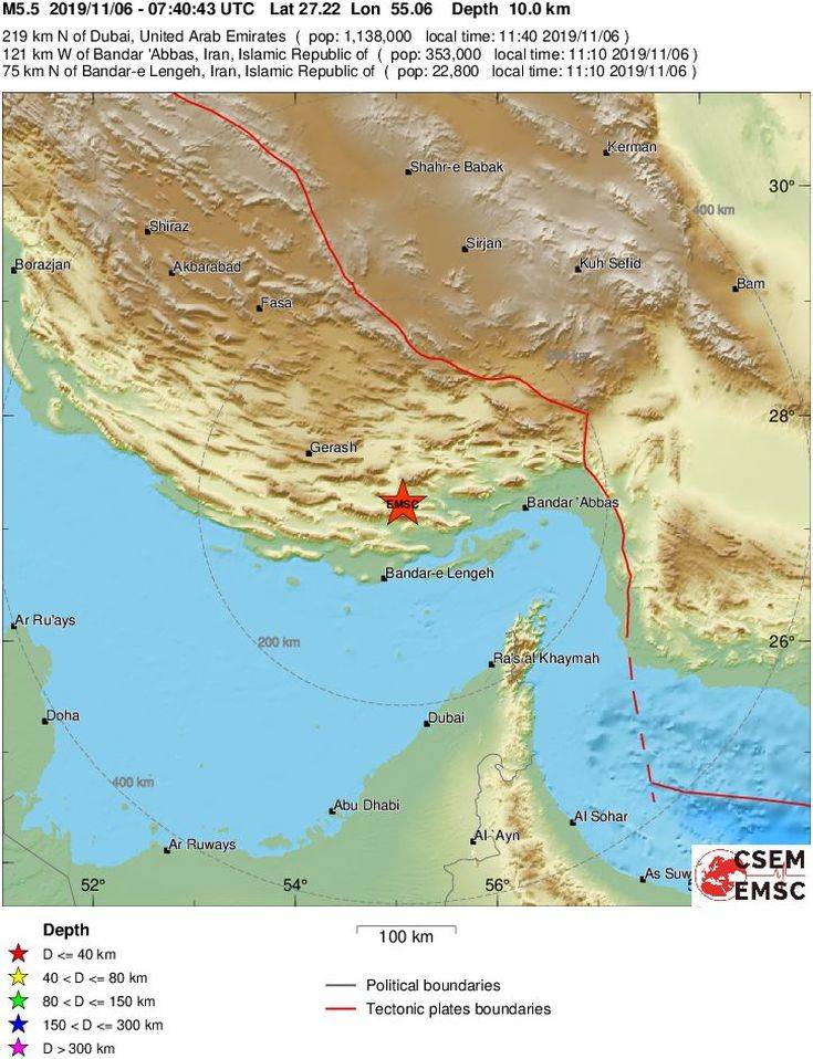 Σύμφωνα με το Ευρωμεσογειακό Ινστιτούτο ο σεισμός είχε επίκεντρο την περιοχή της πόλης Μπαντάρ Λεγκέρ.