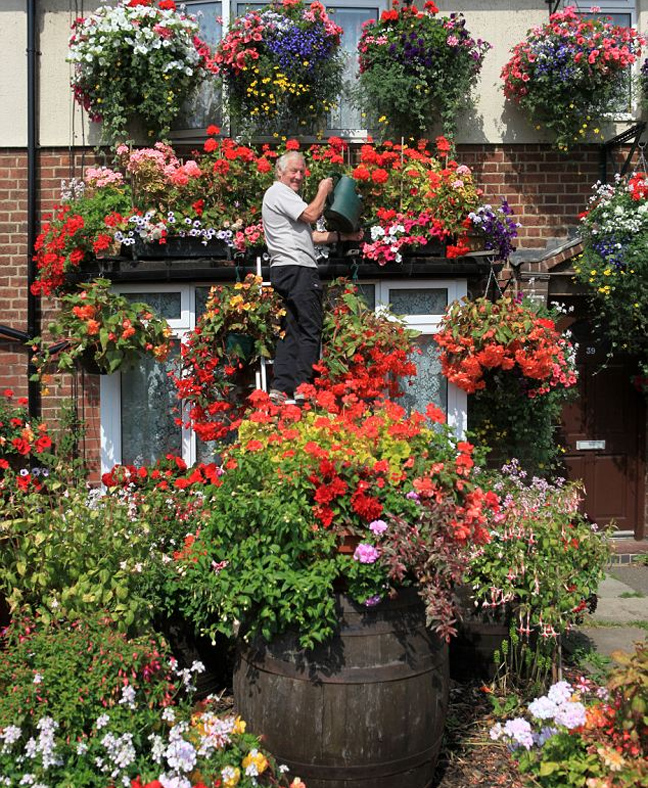 Την ώρα που η Βρετανία «βράζει» με θερμοκρασίες πολύ υψηλές- για τα δικά της δεδομένα- ο Fred Whaley πιάνει δουλειά παρέα με το… ποτιστήρι του. Ο 69χρονος αφιερώνει μία ώρα την ημέρα ποτίζοντας τις 14 υπέροχες ζαρντινιέρες του αλλά όπως λέει, αξίζει τον κόπο για να απολαμβάνει την πανδαισία των χρωμάτων.