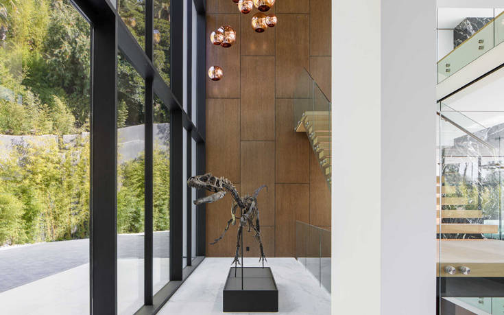 Ο σκελετός του αλλόσαυρου και μόνο κοστίζει 1,5 εκατ. δολάρια και εννοείται πως καταλαμβάνει κεντρική θέση, αφήνοντας γύρω του άλλα 1.160 τ.μ. υπερμοντέρνας αισθητικής και άψογου design.