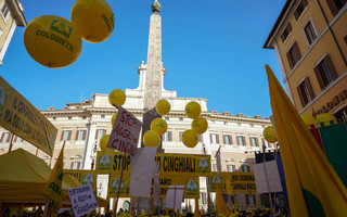 Εκατοντάδες αγρότες διαδήλωσαν την Πέμπτη στη Ρώμη, διαμαρτυρόμενοι για τον ανεξέλεγκτο πολλαπλασιασμό των αγριογούρουνων τα οποία καταστρέφουν τις καλλιέργειές τους και προκαλούν τροχαία ατυχήματα.