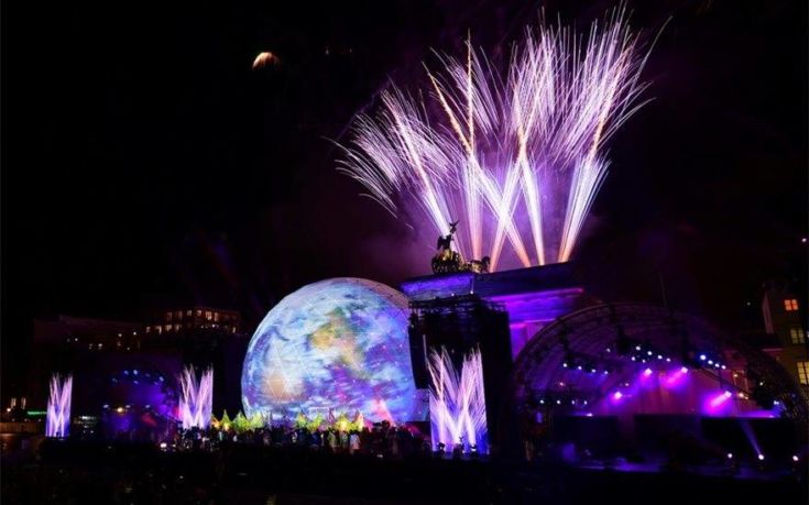Αργά το βράδυ οι εκδηλώσεις μεταφέρθηκαν στην Πύλη του Βραδεμβούργου, όπου ο μαέστρος Ντάνιελ Μπάρενμποϊμ διήυθυνε τη διάσημη Φιλαρμονική του Βερολίνου. Αργότερα ακολούθησε ροκ συναυλία.