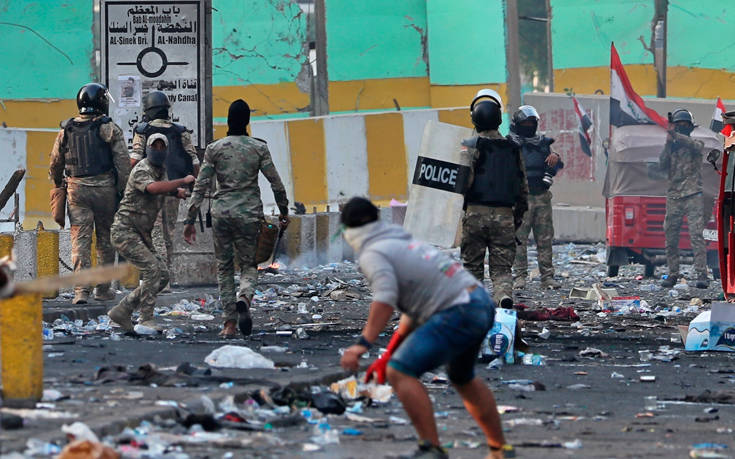 Σήμερα συγκρούσεις σημειώθηκαν μεταξύ διαδηλωτών και της αστυνομίας στη Βαγδάτη, κοντά στην πλατεία Ταχρίρ.