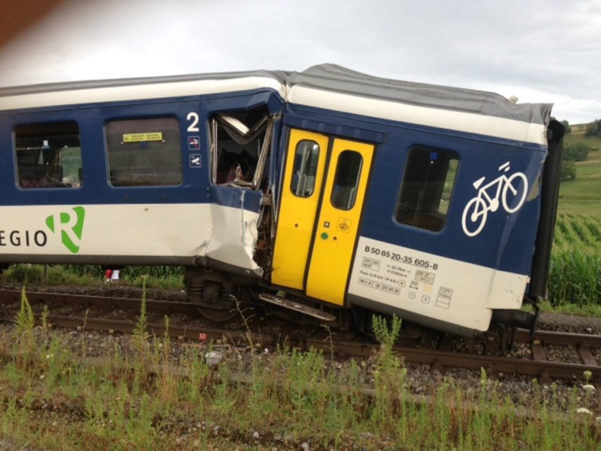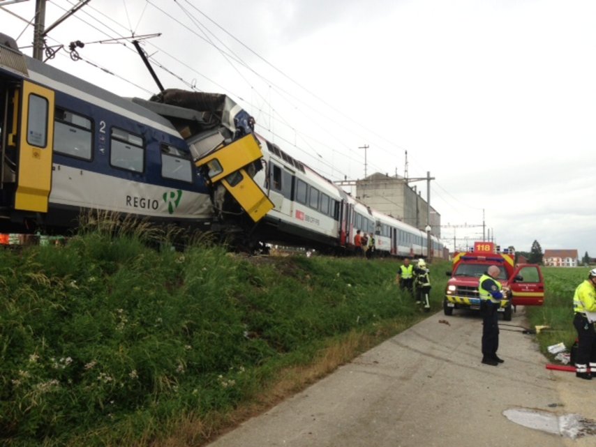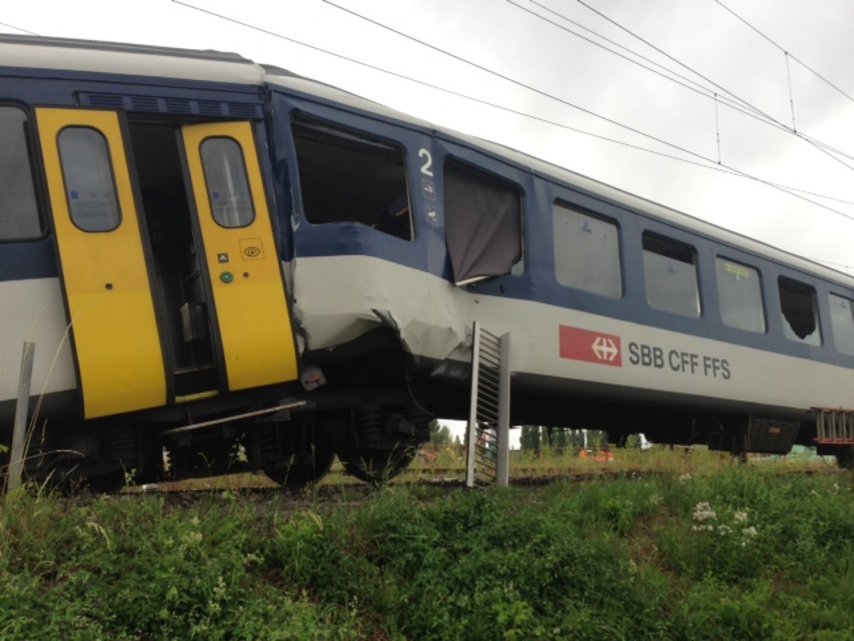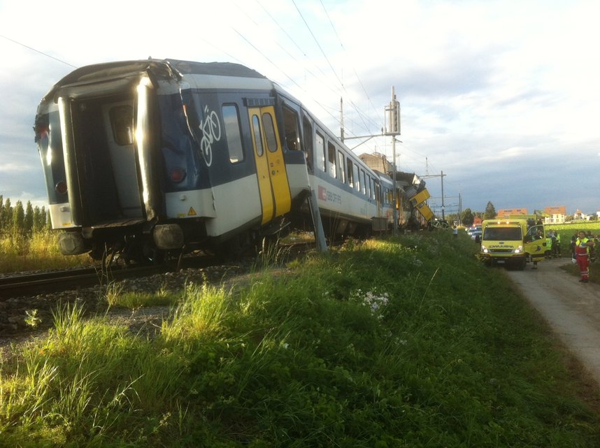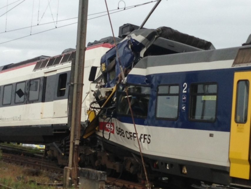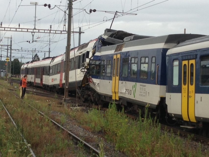Από τη σφοδρή σύγκρουση που σημειώθηκε σε κοντινή απόσταση από ένα σταθμό στο Γκρανζ πρε Μαρνάν, στο καντόνι του Βο, τραυματίστηκαν πολλοί από τους επιβαίνοντες, ενώ οι πρώτες πληροφορίες κάνουν λόγο για 44 τραυματίες.