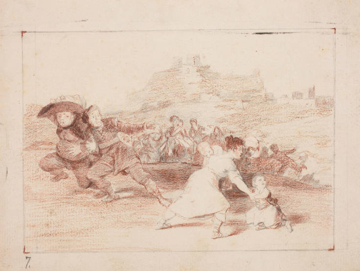 Ιδιαίτερη σημασία έχουν οι γνωστές σειρές χαρακτικών του Γκόγια, όπου συνυπάρχει ο χώρος των ονείρων με τους εφιάλτες, η καταγγελία για τις συνθήκες του περίγυρου με την ειρωνεία για τα ανθρώπινα: όπως τα διάσημα «Καπρίτσια», οι «Ταυρομαχίες», οι «Ανοησίες» και οι ανατριχιαστικές «Καταστροφές», όπου το σχέδιο και η γραμμή φθάνουν στα όρια της αφαίρεσης. Το πανόραμα της ματιάς και της παραγωγής του Γκόγια συμπληρώνουν τα σχέδια για τα θέματα που τον ενδιέφεραν ιδιαίτερα, «για την κακή λογοτεχνία», όπως τονίζει η Μένα: η βία κατά των γυναικών, το γήρας και το μαυλισμένο από τις ελίτ πλήθος.