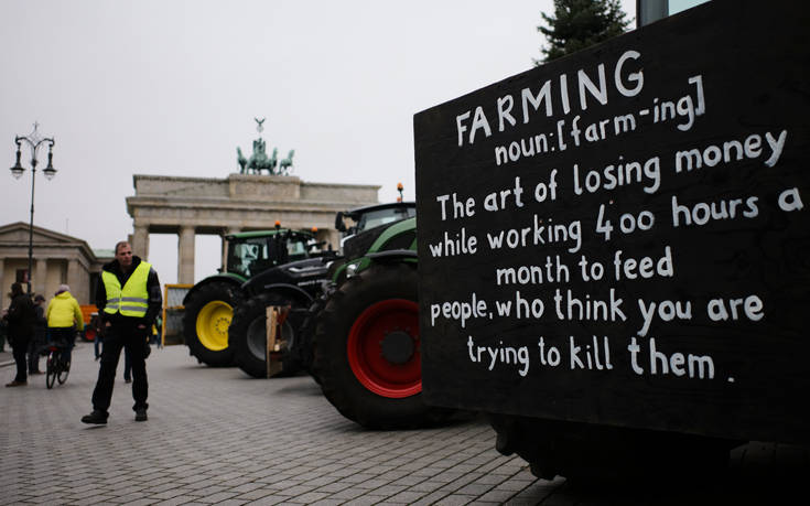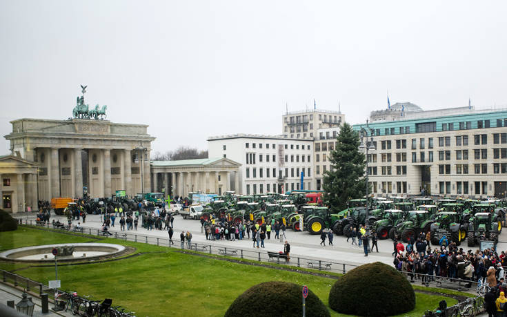 Μια μεγάλη διαδήλωση κατά της δέσμης μέτρων για την αγροτική παραγωγή που παρουσίασε η κυβέρνηση της χώρας πραγματοποιούν οι Γερμανοί αγρότες, οι οποίοι έχουν «παραλύσει» το Βερολίνο, καθώς τοποθέτησαν τα χιλιάδες τρακτέρ τους στην Πύλη του Βραδεμβούργου και σε μια μεγάλη ακτίνα γύρω από αυτήν.