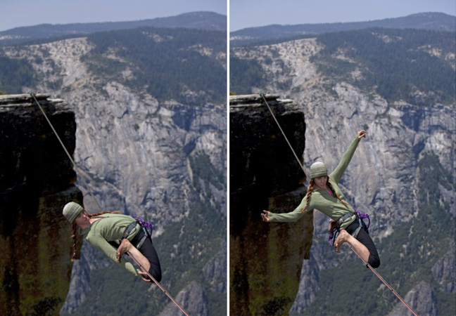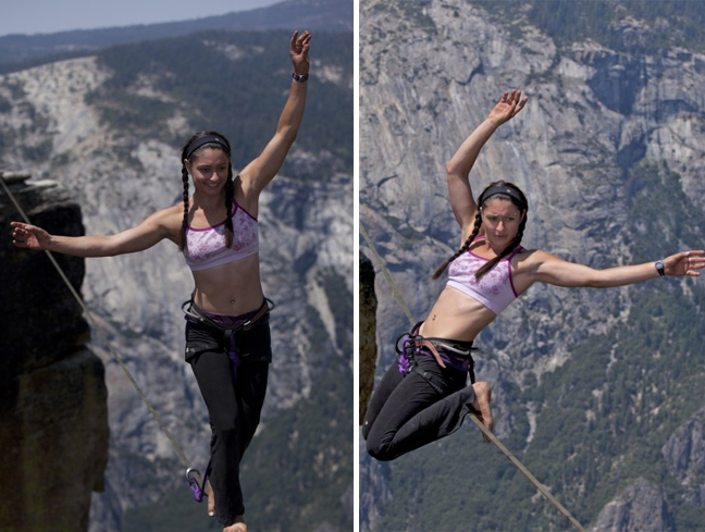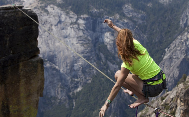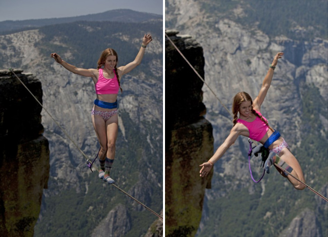 Οι επαγγελματίες slackliners Emily Sukiennick και Hayley Ashburn έστησαν τα σχοινιά τους σε ύψος ενός χιλιομέτρου στο Yosemite National Park στο Taft Point της California.