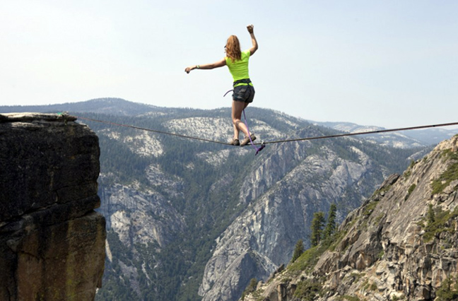 Κάποιοι τρομάζουν και μόνο κοιτάζοντας τις φωτογραφίες. Αλλά για κάποιους άλλους, η αδρεναλίνη του slackline, της ισορροπίας πάνω σε σκοινί, είναι αρκετά μεγάλο κίνητρο ώστε να κατανικήσουν το φόβο τους.