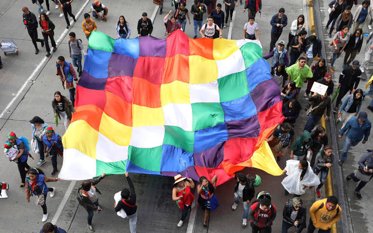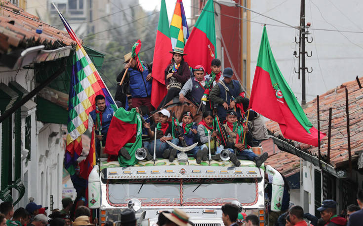 Στην Μπογοτά,πολλοί αυτόχθονες συμμετείχαν στην πορεία.