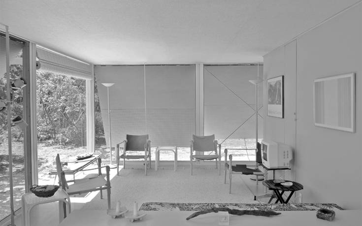 Με τα ξύλινα πάνελ κλειστά, μοιάζει σαν ένα μικρό και ζεστό εξοχικό. Όταν όμως ανοίγουν, μετατρέπεται σε ένα ανοιχτό κιόσκι, ένα μεγάλο υπόστεγο για να χαρείς την εξοχή. Αποθεώνοντας τον φονξιοναλισμό που ερχόταν να εγκαθιδρυθεί ως αρχιτεκτονική τάση.