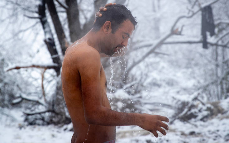 Ένας 27χρονος μετανάστης από το Πακιστάν κάνει μπάνιο σε εξωτερικό χώρο του κέντρου υποδοχής προσφύγων στο Μπίχατς, που βρίσκεται στα βόρεια της Βοσνίας/Ερζεγοβίνης. Στην περιοχή ήδη έχουν πέσει τα πρώτα χιόνια, με τις συνθήκες διαβίωσης στα hot spots να είναι εξαιρετικά δύσκολες. Πολλές ανθρωπιστικές οργανώσεις έχουν ζητήσει να μπει λουκέτο, καθώς δεν παρέχονται καν τα βασικά.