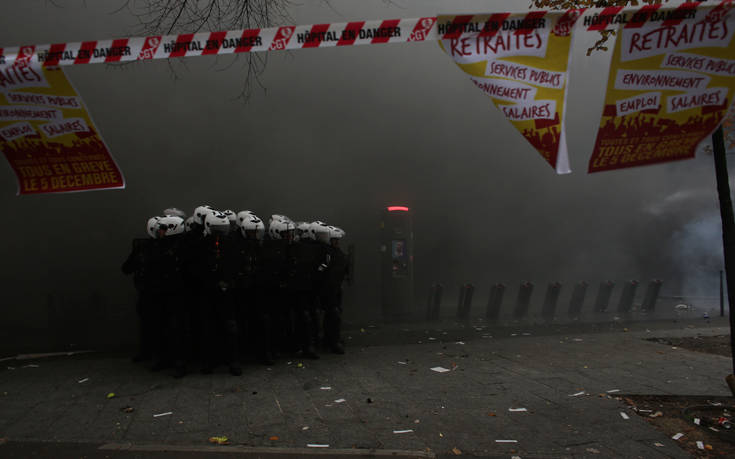 Επεισόδια ξέσπασαν στο Παρίσι κατά τη διάρκεια της διαδήλωσης, με την Αστυνομία να κάνει χρήση δακρυγόνων, με αποτέλεσμα και αρκετές υλικές ζημιές. Οι κινητοποιήσεις «παρέλυσαν» όλη τη χώρα και οι απεργοί δείχνουν αποφασισμένοι να μην κάνουν πίσω.
