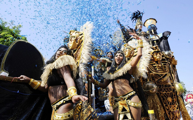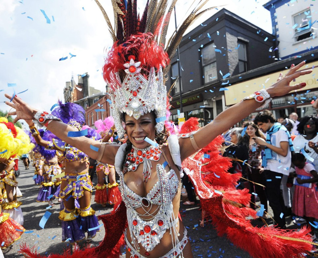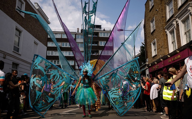 Το μεγαλύτερο street party της Ευρώπης, γεμάτο χρώματα και φαντασμαγορικά κοστούμια, συνεχίζεται στο δυτικό Λονδίνο με εκατοντάδες χιλιάδες θεατές να συρρέουν για να δουν το καρναβάλι του Notting Hill.