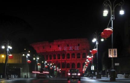 Η ιταλική κυβέρνηση αποφάσισε να φωτίσει το Κολοσσαίο στη Ρώμη με κόκκινο χρώμα προς τιμήν του Πρωθυπουργού της Κίνας που επισκέπτεται την αιώνια πόλη.
