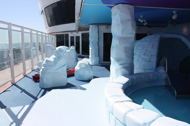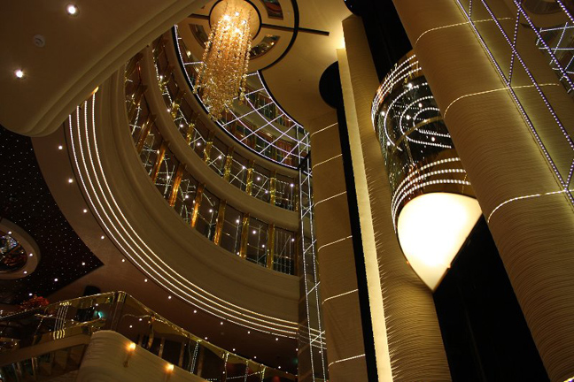 Το alter ego της χλιδής αποτελεί το ιταλικό κρουαζιερόπλοιο Fantasia, το οποίο μπορεί να φιλοξενήσει μέχρι και 4.000 επιβάτες σε 55.000 τετραγωνικά μέτρα δημόσιου χώρου. Το πλωτό ανάκτορο έχει κινηματογράφο, 5 πισίνες, 12 υδρομασάζ, 4 εστιατόρια, 2 μπουφέ, 18 μπαρ, ανεξάρτητες αθλητικές εγκαταστάσεις (γήπεδα τένις, squash, μίνι μπόουλινγκ), προσομοιωτή Formula1, θέατρο χωρητικότητας 1.649 ατόμων, και 19 χώρους ψυχαγωγίας και διασκέδασης) αλλά και ξεχωριστό τμήμα VIP με 99 σουίτες, πολυτελές μπαρ και φινιστρίνια τεραστίων διαστάσεων.