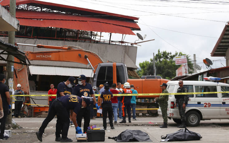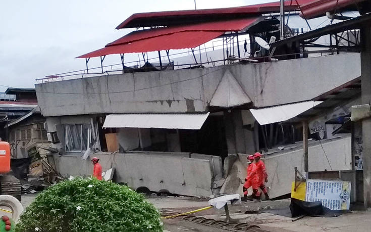 Σωστικά συνεργεία αναζητούν ενδείξεις ζωής σήμερα σε μικρό εμπορικό κέντρο που κατέρρευσε εξαιτίας ισχυρού σεισμού που έπληξε τις νότιες Φιλιππίνες, με αποτέλεσμα τουλάχιστον τρεις άνθρωποι να χάσουν τη ζωή τους και δεκάδες άλλοι να τραυματιστούν.